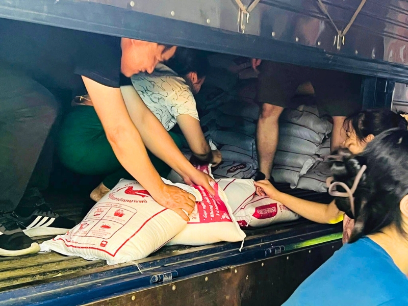 Le soir du 1er août 2025, de 17h à 23h, l’ensemble des participants a travaillé sans relâche pour charger les colis sur des camions-containers, afin que les livraisons puissent partir vers Con Cuông dès la nuit tombée. Malgré la fatigue, la chaleur et le poids des charges, l’ambiance est restée joyeuse et motivée, portée par une conviction partagée : « Ne laisser personne derrière. »